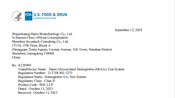 卓远天成助力禾柏生物的糖化血红蛋白检测系统正式获得美国FDA批准!此为中国IVD行业首个通过FDA 510(k)认证的液相糖化血红蛋白测试系统(涵盖诊断与监测)。